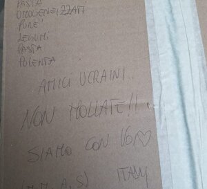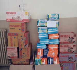 Abbiamo bisogno soprattutto di pannoloni e pannolini, cibo (a lunga conservazione), medicine, vestiti (non abbiamo molto spazio dove tenere i vestiti; quindi, per favore portate vestiti stagionali che possano essere inviati immediatamente in Ucraina).